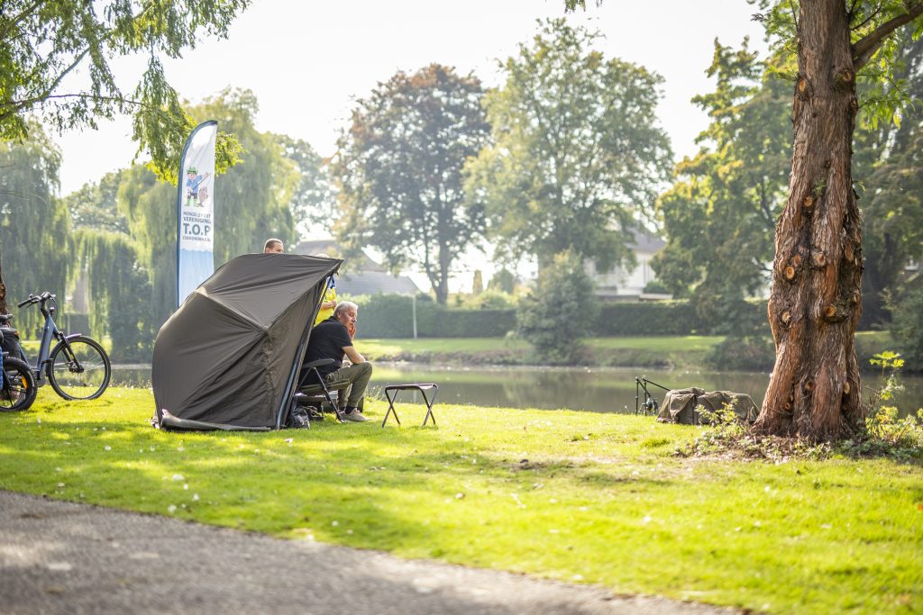 De voorbereidingen waren in de voorbije weken in volle gang en afgelopen zondag viel alles op zijn plaats. Het weer zat mee en de 25 vrijwilligers kwamen al vroeg en vol verwachting naar onze mooie stadsgracht om van de karperworkshop een succes te maken. Ook dit jaar waren de bezoekers goedgemutst. Iedereen werd uitgedaagd om uit zijn of haar comfortzone te stappen. De drilsimulator liet niets aan de verbeelding over en menigeen was verbaasd over hoe krachtig de weerstand is tijdens het drillen van onze grote vriend de karper.
